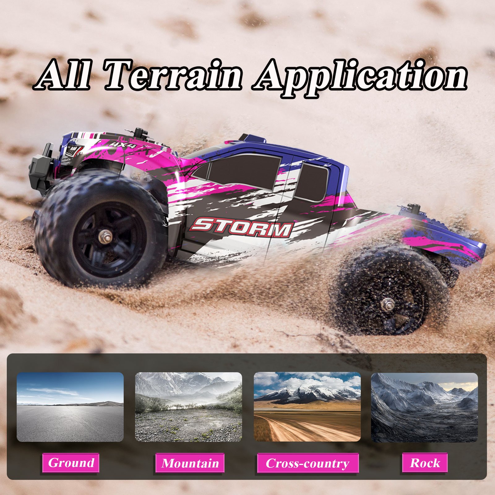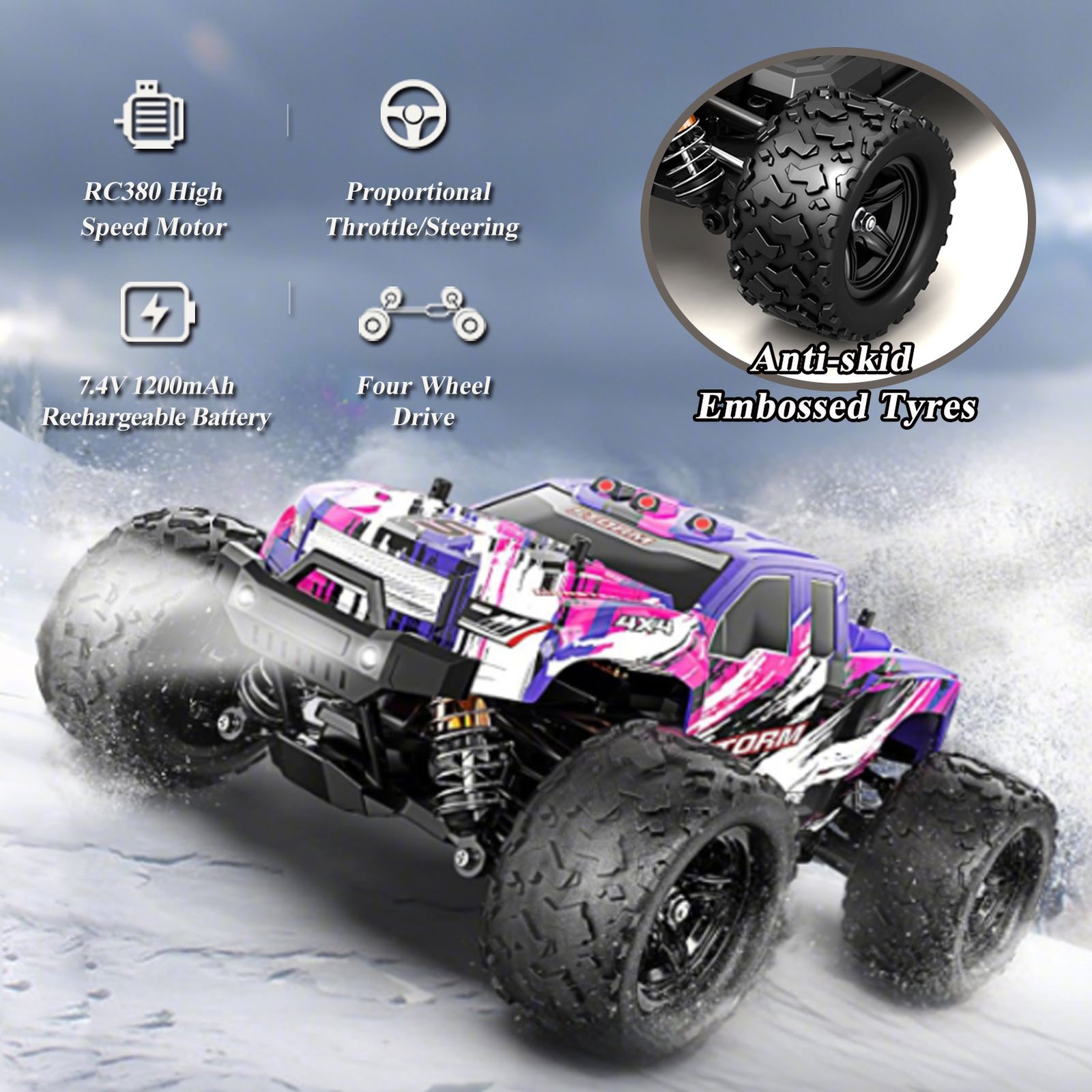 - RC Cars for Adults: Featuring a superior and RC380 motor with high power density for more stable and reliable performance compared to brushed motor, this 4WD fast RC car’s drive train is extremely efficient, with Rampage speeds of up to 36KM/H for exceptional operator enjoyment.