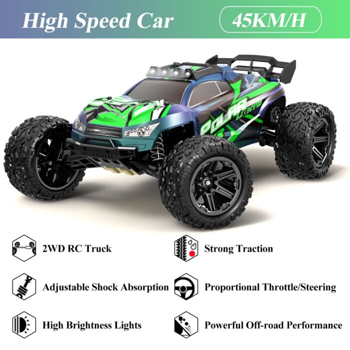 1:8 All Terrain High Speed Off Road Large RC Car, 45KM/H Outdoor Racing Drifting Electric Truck, 2.4Ghz Remote Control, LED Light, 2 Rechargeable 2600mAh Batteries, Birthday Christmas New Year Gift