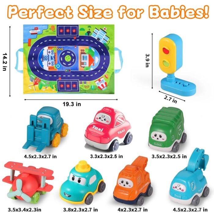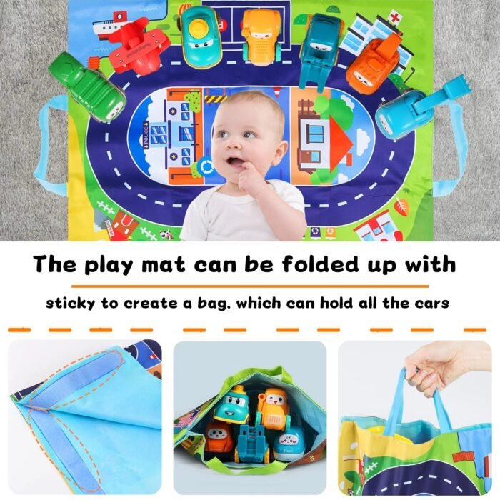8 PCS Baby Cranes Car Toys with Playmat/Storage Bag|1st Birthday Gifts for Toddler Toy Age 1-2|Baby Toy for 1 2 Year Old Boy|Gift for Infant Boy Girl 12 18 Months