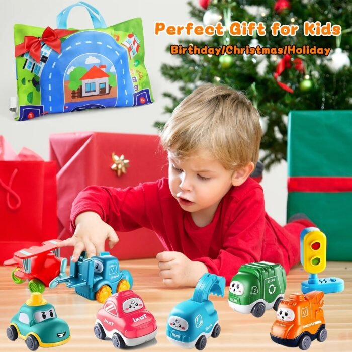 Baby Toy Car for Boys Age 1-2: Spark Imaginative Learning with 7 Different Construction Vehicle Toys! This playset isn’t just fun; it’s a early education tool. Kids can learn to identify various construction trucks for kids like dump trucks, cement mixers, and excavators. The included traffic light teaches basic road safety and color recognition, turning playtime into a valuable learning toy experience that fosters hand-eye coordination and cognitive development.