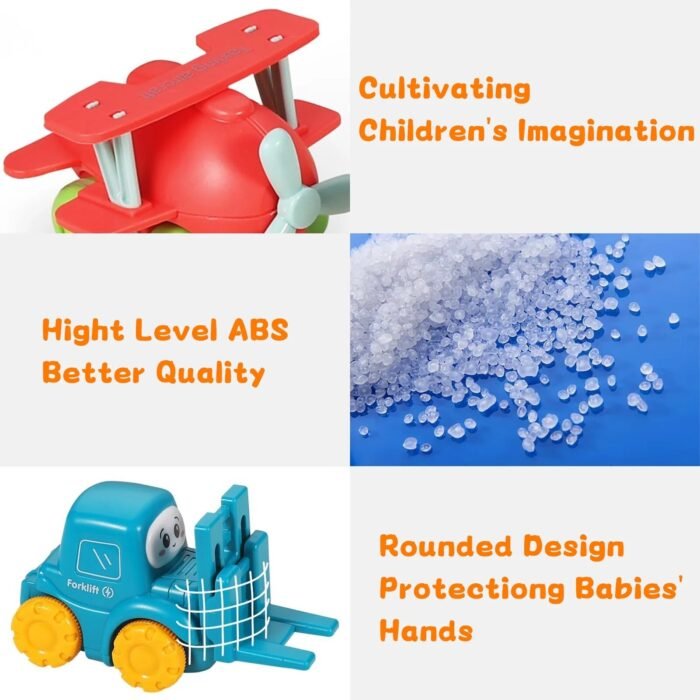 High Quality ABS: Premium Quality & Child-Safe Materials Give You Peace of Mind. We prioritize your child’s safety. These toy trucks for toddlers are made from high-quality, non-toxic ABS plastic with smooth edges to prevent little hands from getting hurt. They are durable and sturdy, built to withstand rough imaginative play and last for years. Conforms to ASTM F963 and CPSIA safety standards.