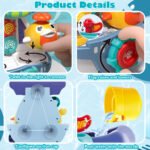- Funny Playing Ways:Fill the water cup with water or use a showerhead to pour water from above the toy, and the water will splash down and splash. Press the chick toy and it will spray out a soft stream of water. The water flow provides power to the wheels in the crab’s mouth, causing the wheels to rotate and splashing water. Help toddler 1-3 develop fine motor skills through fun water games. Rotate the red knob below, and the flag will rise and fall, cultivating children’s observation skills.