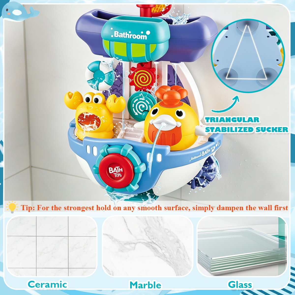 - Stable Installation: Our toys are equipped with three strong suction cups, suitable for sticking to glass/tiles/marble/bathtubs. Three suction cups are distributed and pasted to form a stable triangle, making installation more stable and less likely to fall off. Because it can be carried to the bathroom/swimming pool/shower room to play, providing happiness for babies over 18 months old anytime, anywhere!(Tip: To achieve the strongest adhesion on any smooth surface, simply gently wipe the wall)
