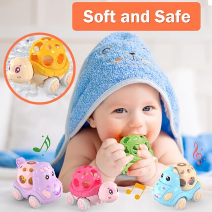 - The dinosaur vehicle is made of durable ABS material, which can withstand long-term use and rough gaming. Designed for infant with round edge design, no sharp parts, no small parts, providing your little baby with all-around protection. Perfect size for babies little hands to grip or push.