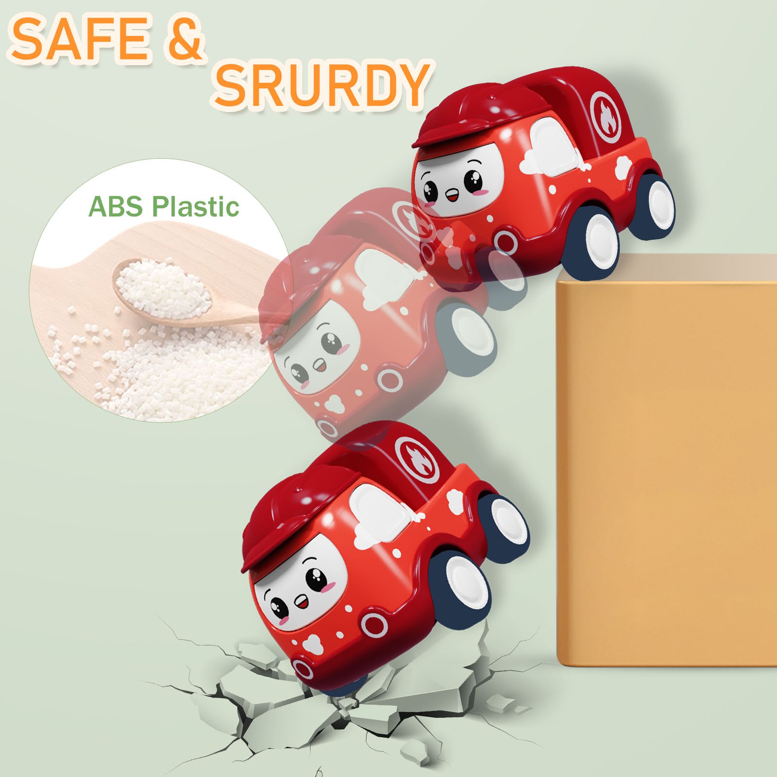 - No need batteries, friction powered for fun and handy vehicles toy set for kids. With a good push ad auto matic rotating function. The baby only needs to gently pull the car toy back, then let go, and the toy car will start moving forward. 2.5 inches designed for toddlers’ small hands, easy for little kids to push and grip. Through learning how to push and pull small cars, kids develop imaginations, cognitive and motor skills.