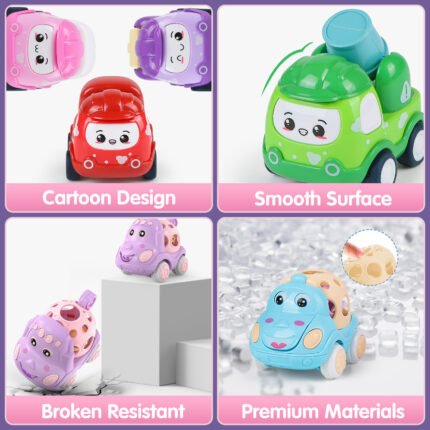 - The toy car is made of ABS material, which is safe and odorless, making it very safe for babies. The car is sturdy and has a smooth appearance without burrs. Please rest assured that baby can grip and play with it.